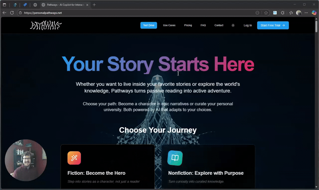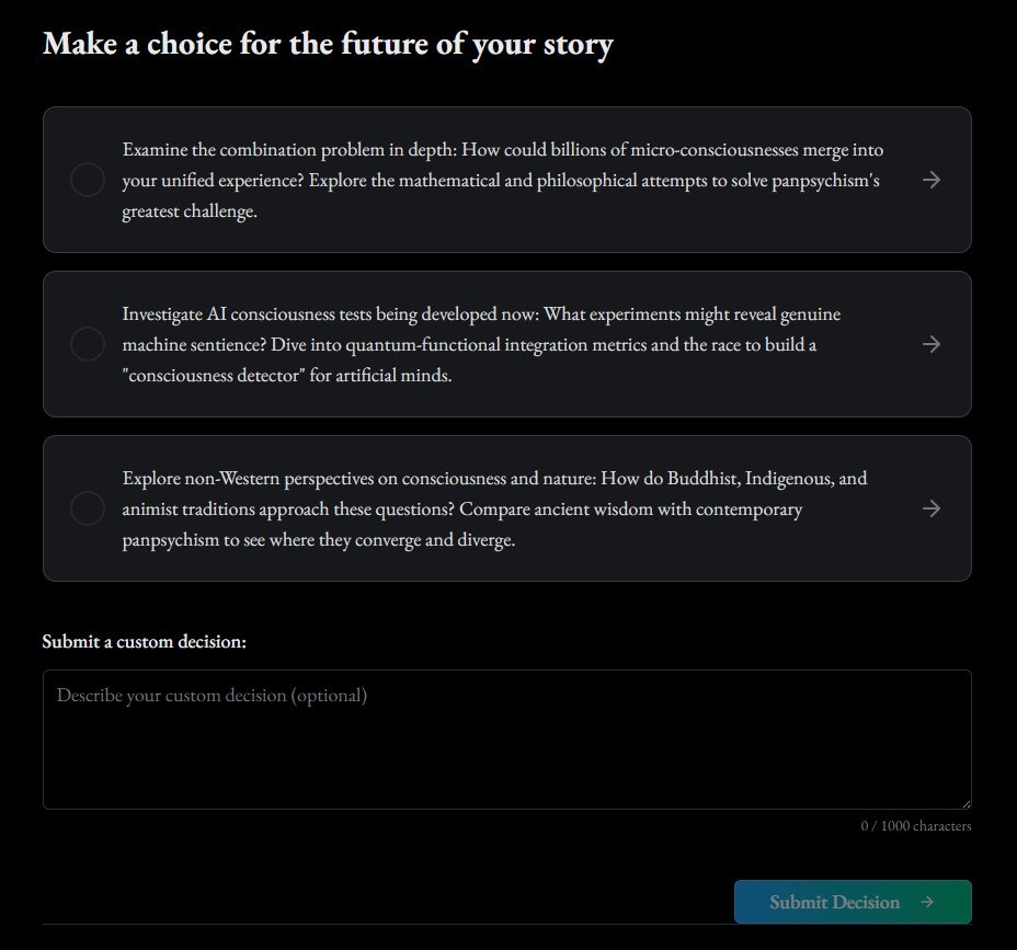 Pathwaysは、日々届くニュースレター感覚の章と、ゲーム化された“選択式”の世界創造を組み合わせた、適応型ストーリーテリングとインタラクティブ学習の統合プラットフォーム。何百もの分岐を追跡す...