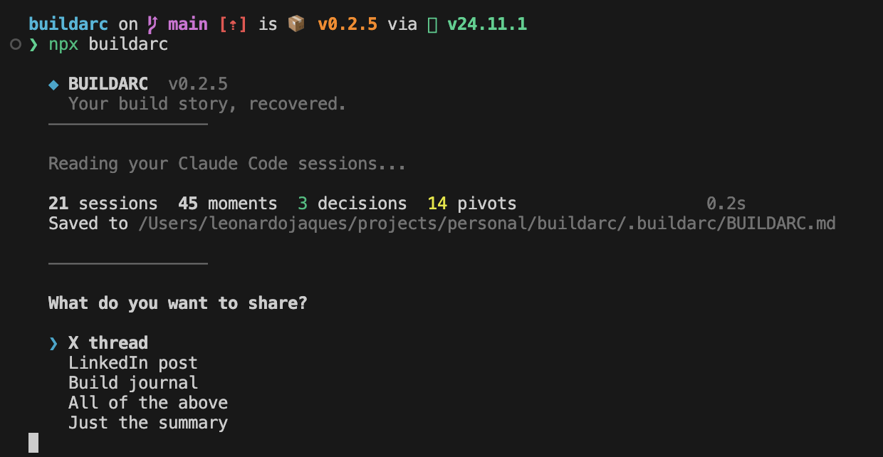 ## 概要 - Claude Code のセッションを投稿可能なコンテンツへ変換する CLI - 全セッションを一括解析して、意思決定・ピボット・感情の瞬間を抽出 ## 特長 - ローカル実行...