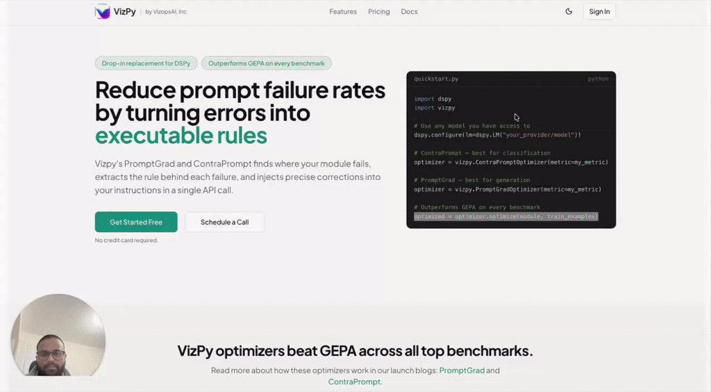 VizPy automatically optimizes your LLM prompts by learning from failures. With a single API call,...