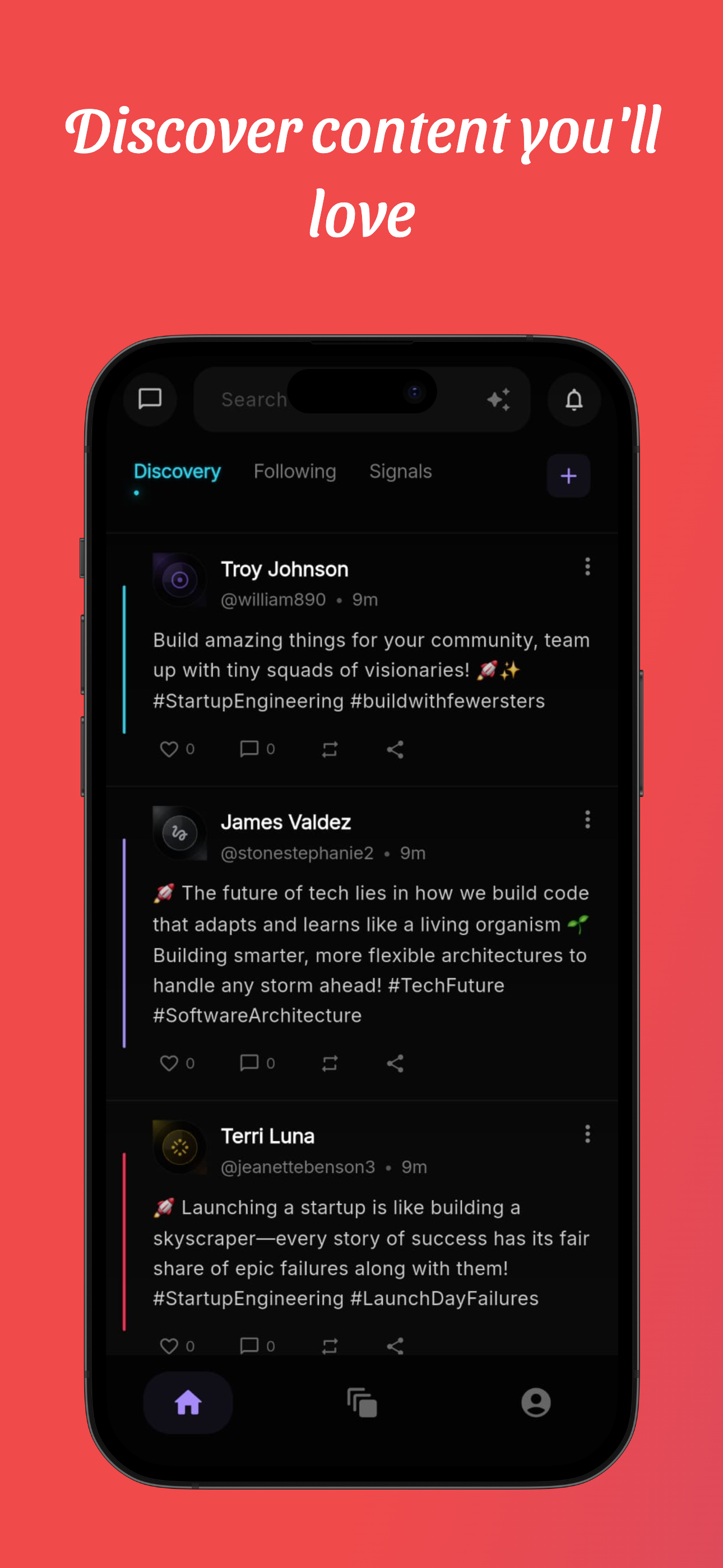Social network powered by semantic discovery, not followers