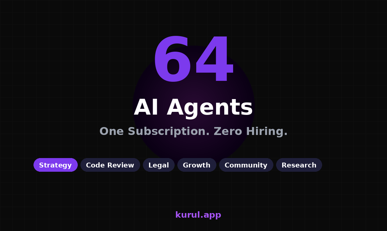Stop juggling multiple AI subscriptions. Kurul gives you 64 specialized AI agents across 15 categ...