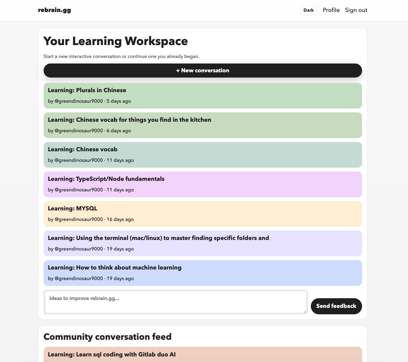 Rebrain.gg is built to help you learn. Instead of chat, LLMs teach you through interactive questi...