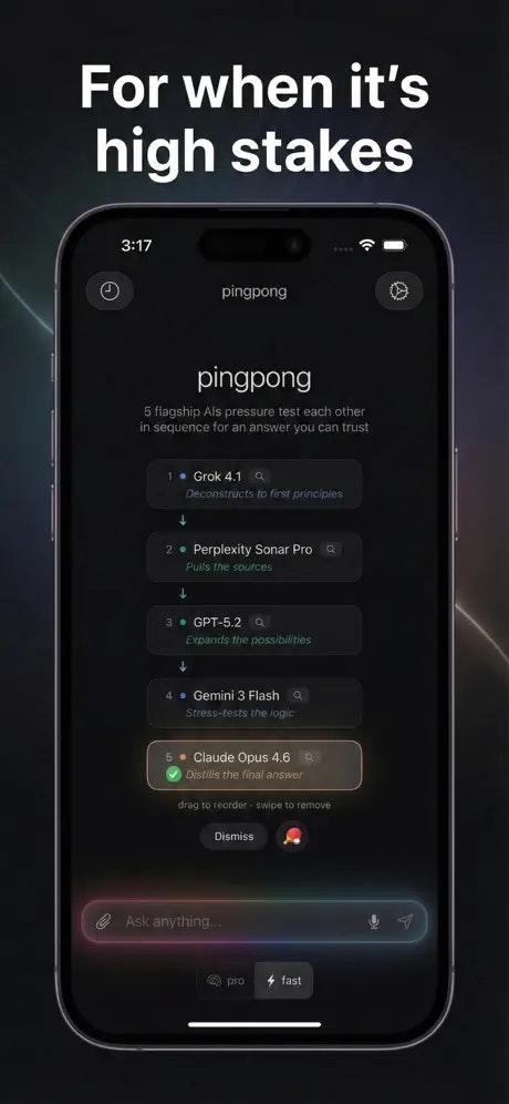 Stop trusting one AI with decisions that matter. pingpongit runs your question through 5 flagship...
