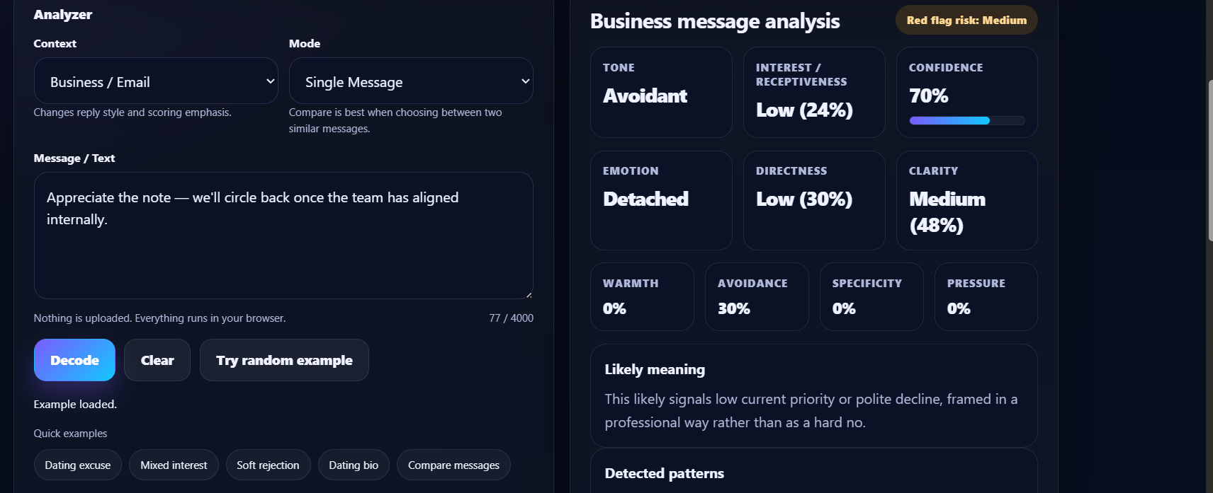 Intentify analyzes messages and detects tone, interest level, emotional signals and potential red...