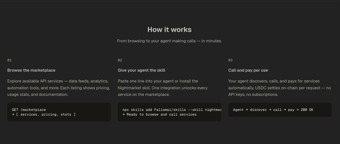 Your AI agent shouldn't have to do everything alone. Nightmarket is the first marketplace where A...
