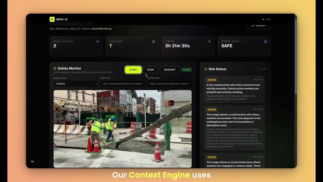 Aegis AI is an autonomous safety supervisor for construction sites. Unlike traditional systems th...