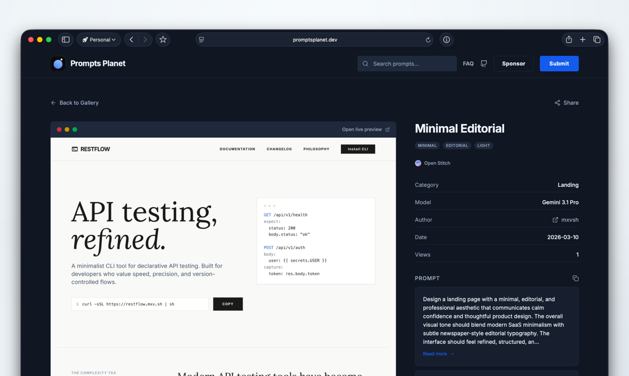Prompts Planet is a gallery of AI-generated websites and the prompts behind them. Think of it as ...
