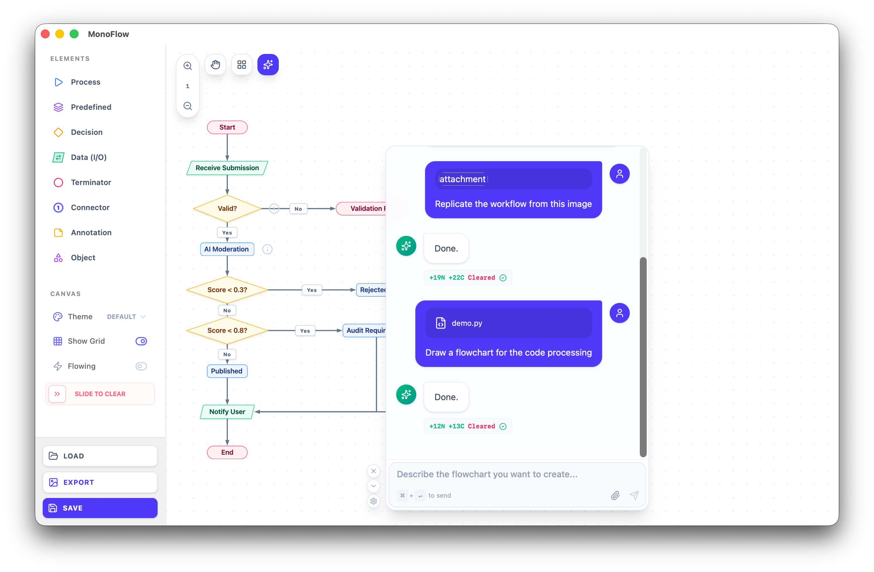 Meet MonoFlow: The pure, AI-powered flowchart editor that cures your alignment anxiety. Type a pr...