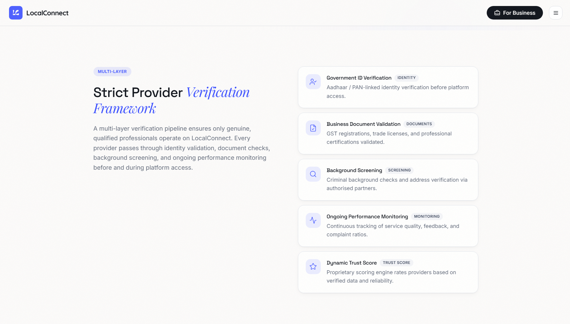 LocalConnect is an AI-powered hyperlocal services platform that helps users discover verified loc...