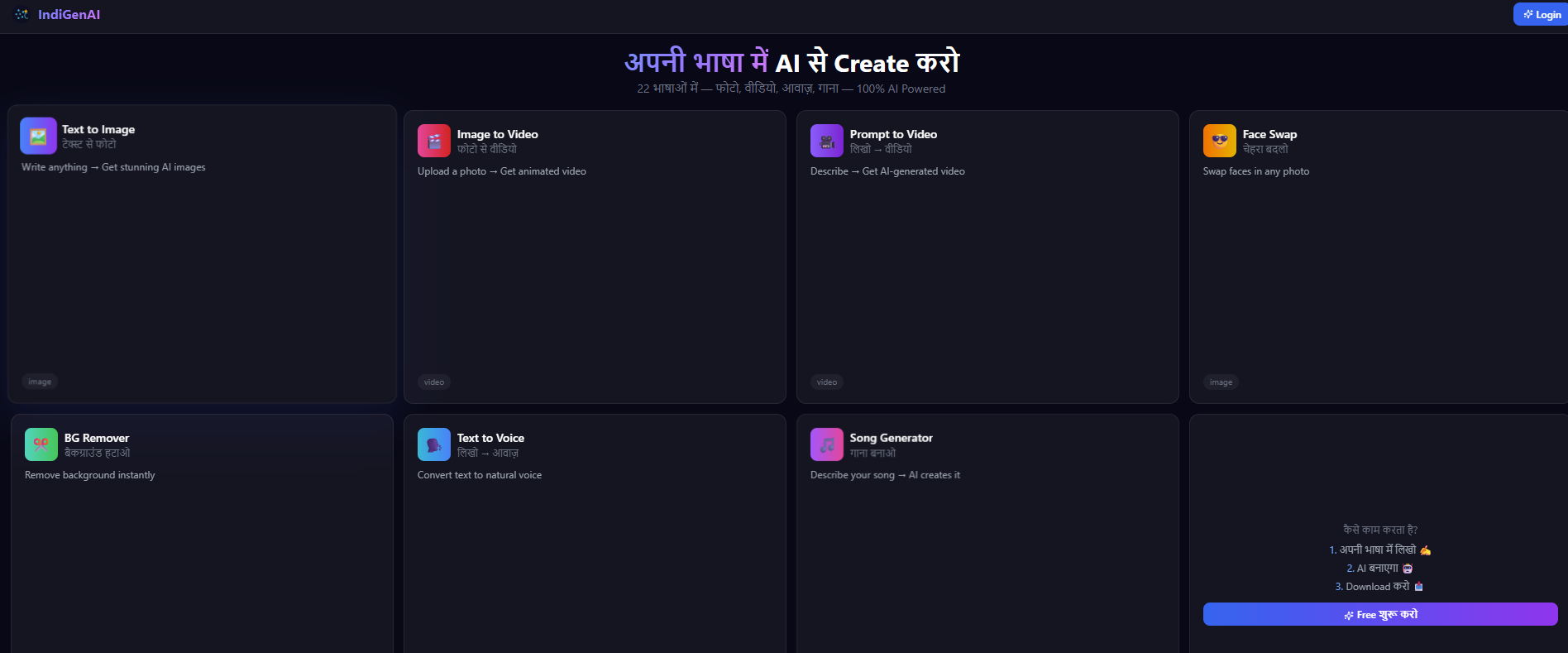 IndiGenAI — The #1 AI Creator Platform. Generate stunning images, videos, voiceovers & music from...