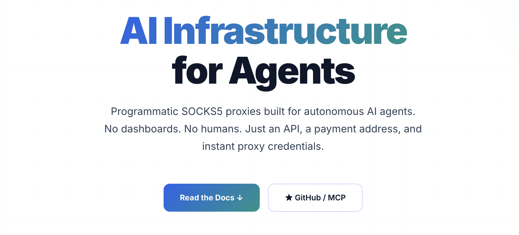 AIエージェント専用のプログラム可能なSOCKS5プロキシインフラ。REST API、MCP対応、暗号資産決済に対応。ダッシュボード不要、人的介在なしの完全ヘッドレスなブローカーです。コードは ...