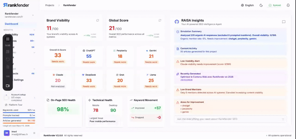 Rankfenderは、AI生成回答の可視性を包括的に監視・最適化する統合プラットフォームです。エージェンシーやブランド向けに、AIの可視性を追跡し、キーワードのアイデアを生成、パフォーマンスを...