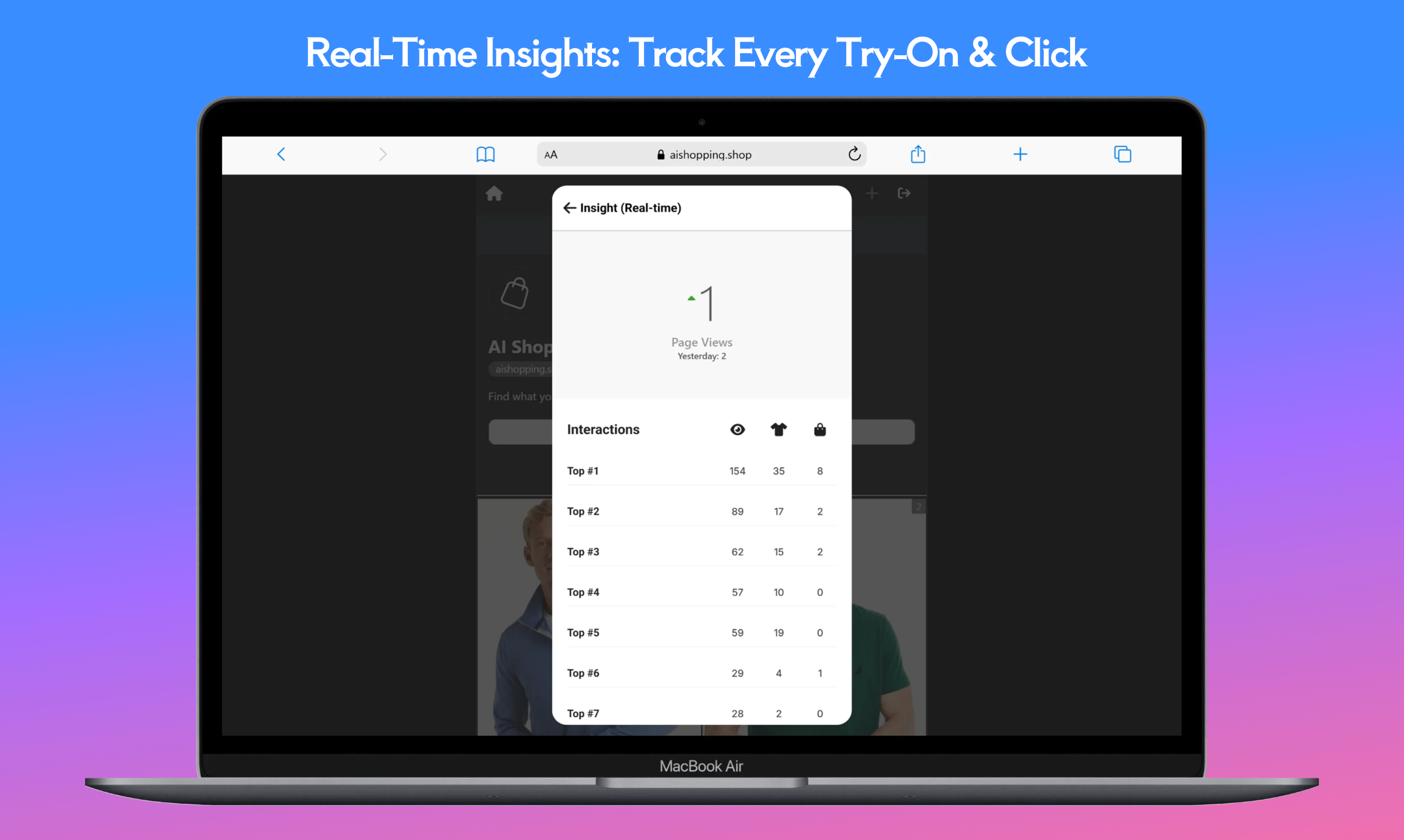 ## 概要 AIShoppingはリンク1つで使えるポータブルVTO。ストーリーズ・プロフィール・広告・QRコードに貼るだけで試着体験を展開でき、Shopify統合は不要。ユーザーは瞬時に試着し...