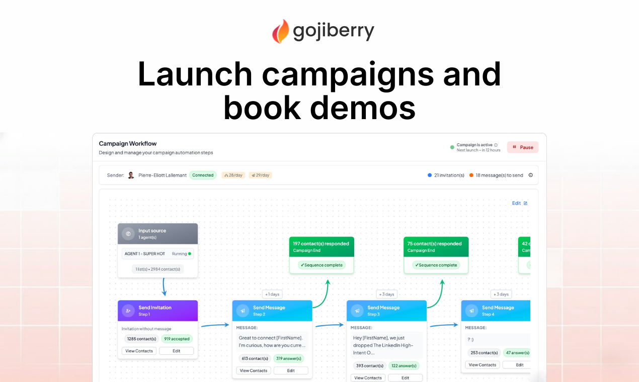 ## 概要 GojiberryAI は高意図リードを検出し自動でエンリッチ・適格化、LinkedIn 会話を超パーソナライズして一つの受信箱で管理するAI GTM ブレイン。信号優先で、ボリュー...