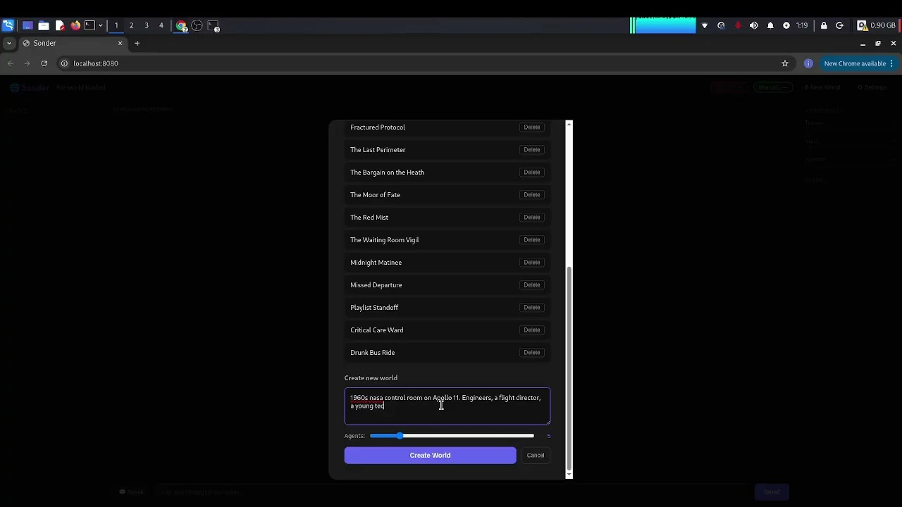 Describe any scene. AI agents with real personalities, backstories, and grievances spawn and star...
