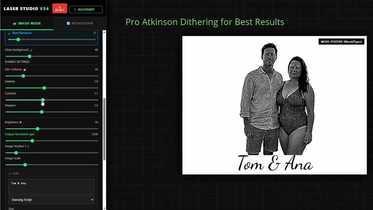 Laser Studio brings powerful dithering (Jarvis, Atkinson), AI image generation, intelligent SVG v...