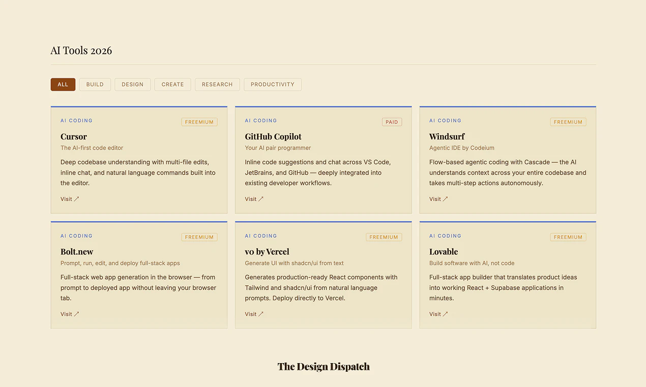 Most AI newsletters and tools overwhelm you with volume. The Design Dispatch is built to do the o...