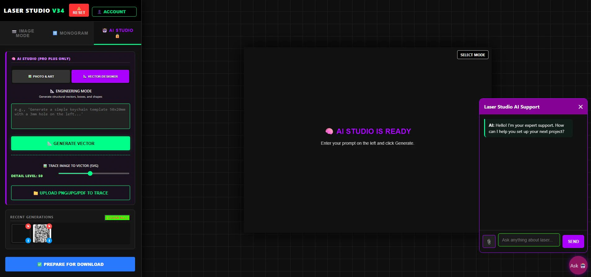 All-in-one AI & vector web software for laser engravers.