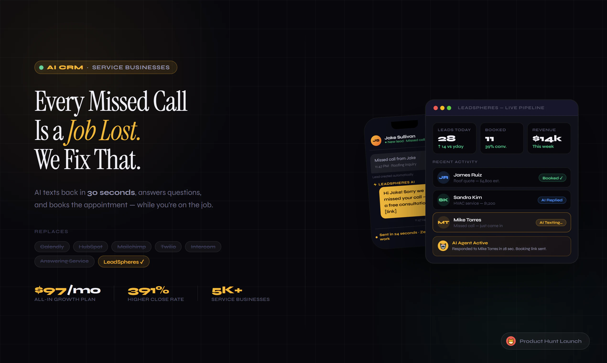 LeadSpheres is an AI-powered CRM for service businesses — roofers, HVAC, med spas, contractors — ...