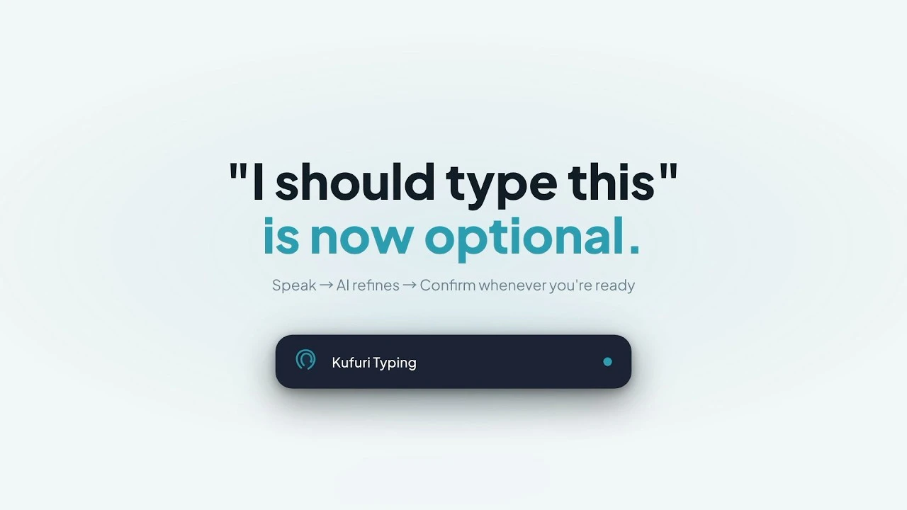 Kufuri Typing helps you write on macOS without switching into "typing mode." Speak naturally, let...