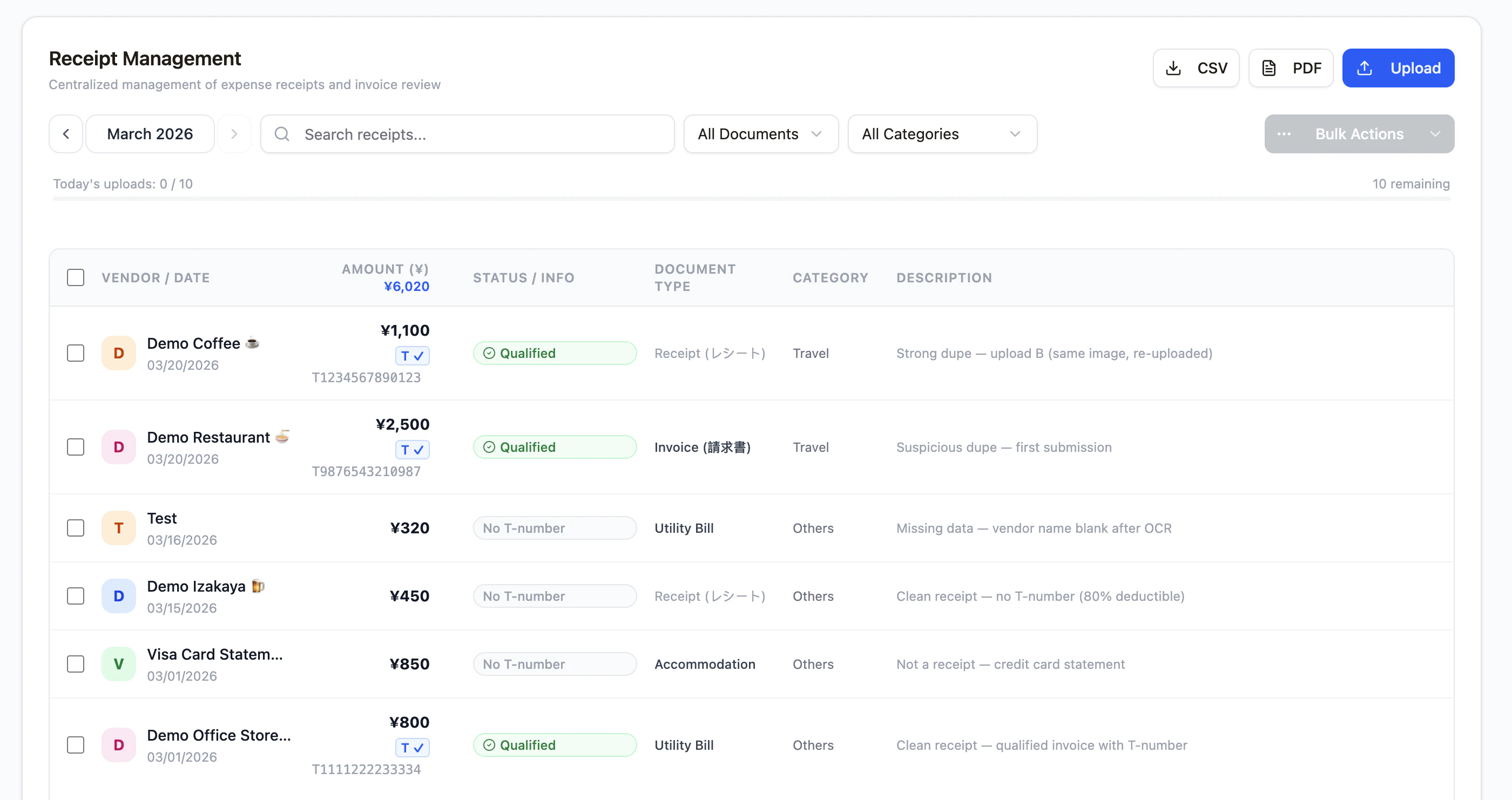 AIがレシート・帳簿を自動管理。電子帳簿保存法に対応。7年間無料保管。5言語対応(日本語・中文・English・한국어)。在日外国人事業者にも最適。 Shinshin Chobo is the ...