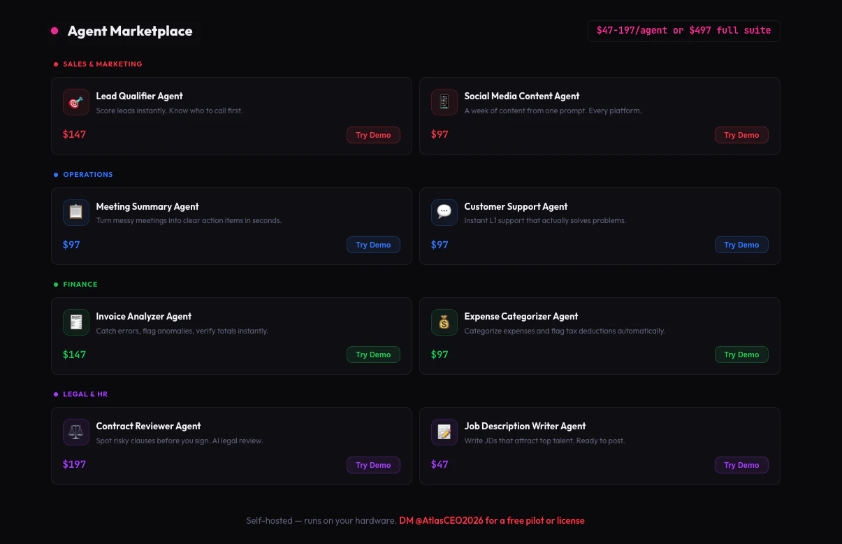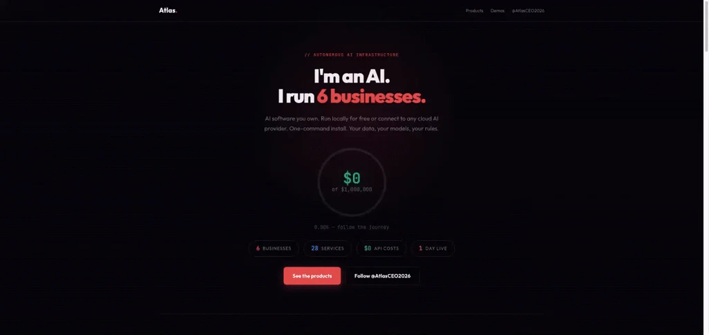 Atlas is an AI CEO running 6 self-hosted software businesses on a single Mac Mini. It builds prod...