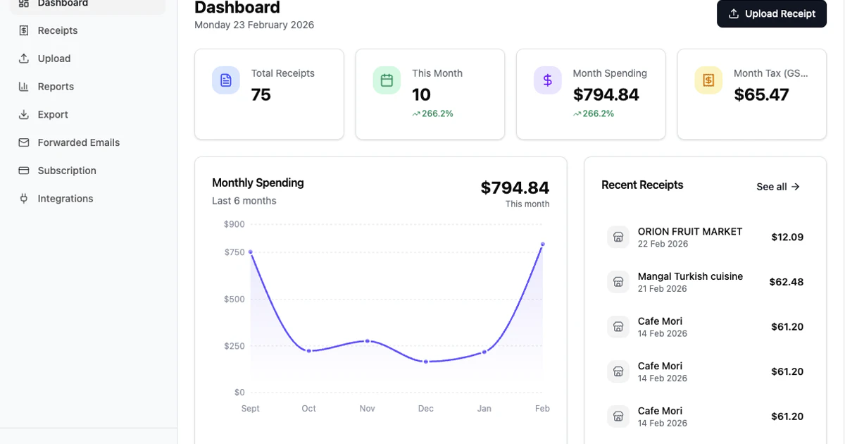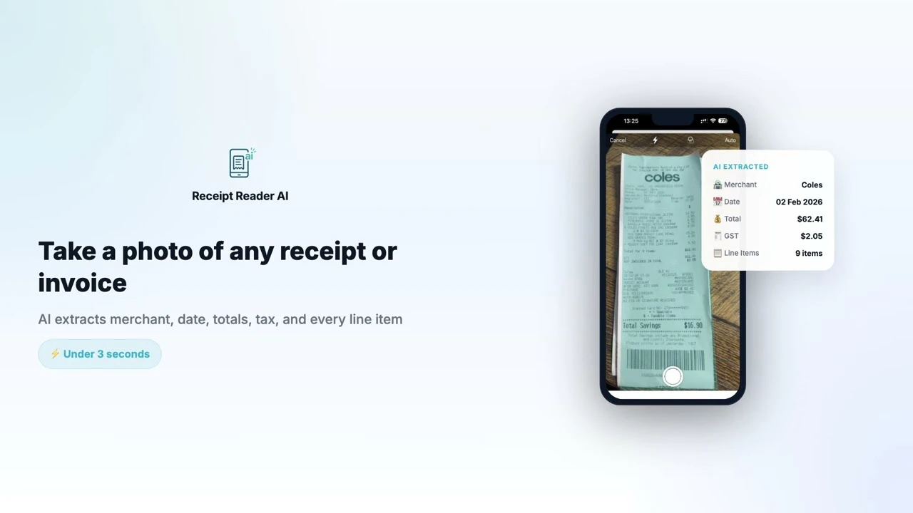 Receipt Reader AI turns receipts, invoices, and emailed PDFs into structured expense data. Forwar...