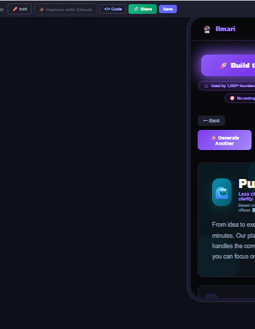 Ilmari AI turns a single idea into a complete startup — including name, product, landing page, an...