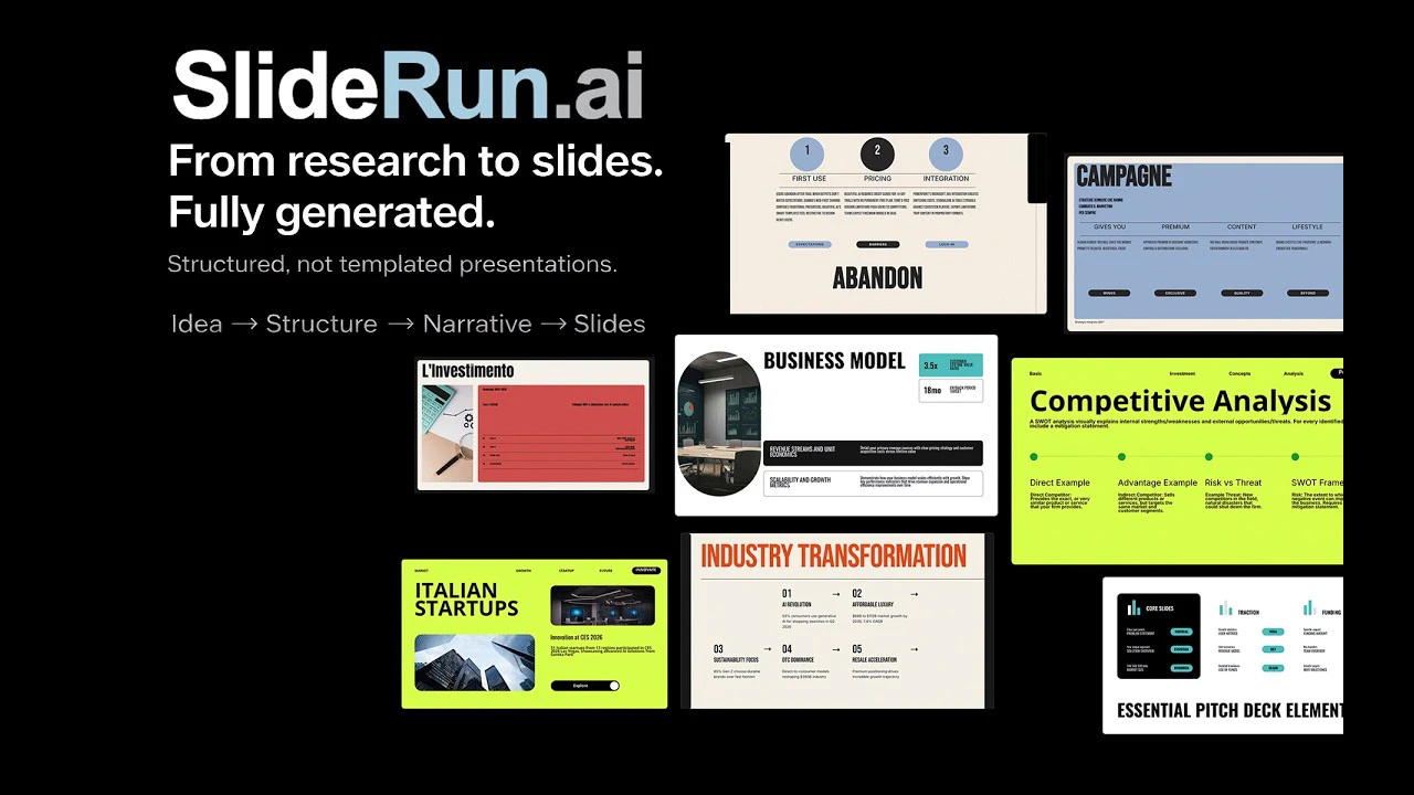 SlideRun turns an idea or your own text into a structured presentation in minutes. It does the re...