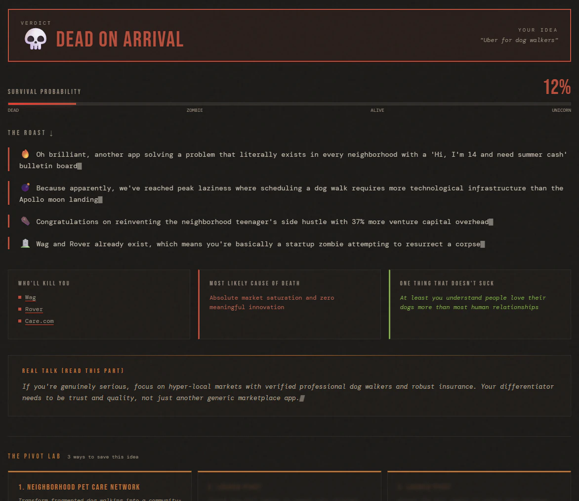 AI that brutally validates your startup idea with real data