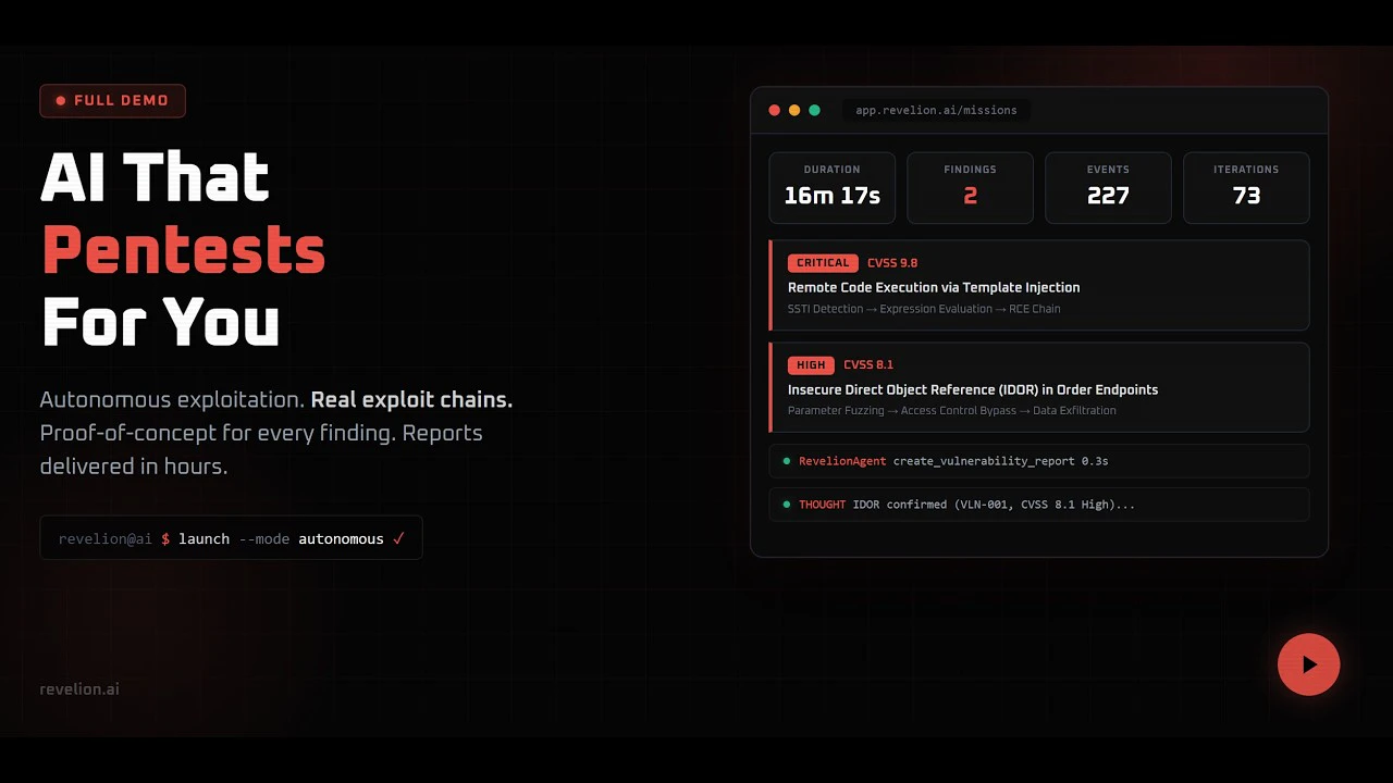 Revelion is The Autonomous AI Pentester. A team of AI agents that autonomously hack your web apps...