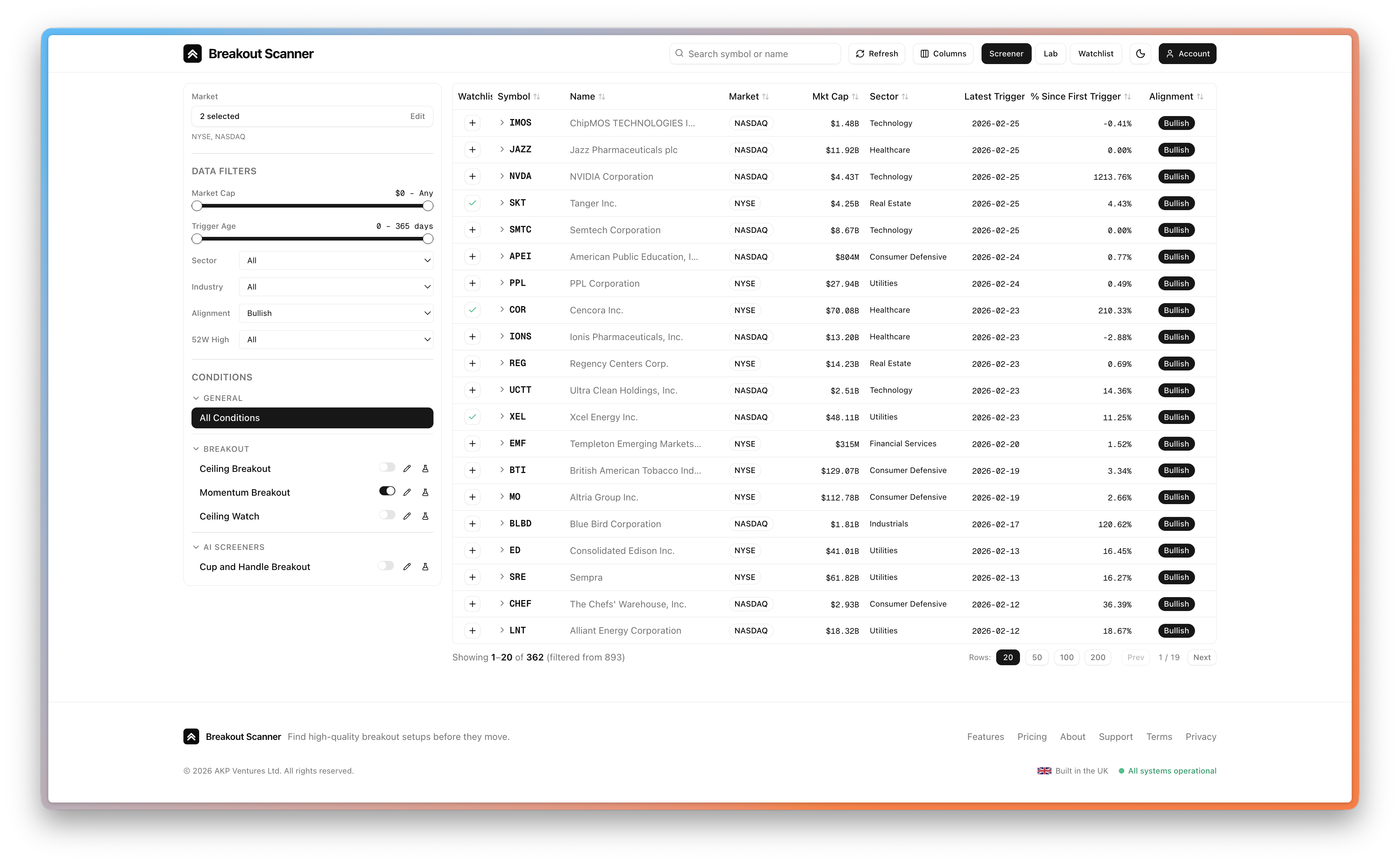 AI搭載の株式ブレイクアウト検出とスクリーニング