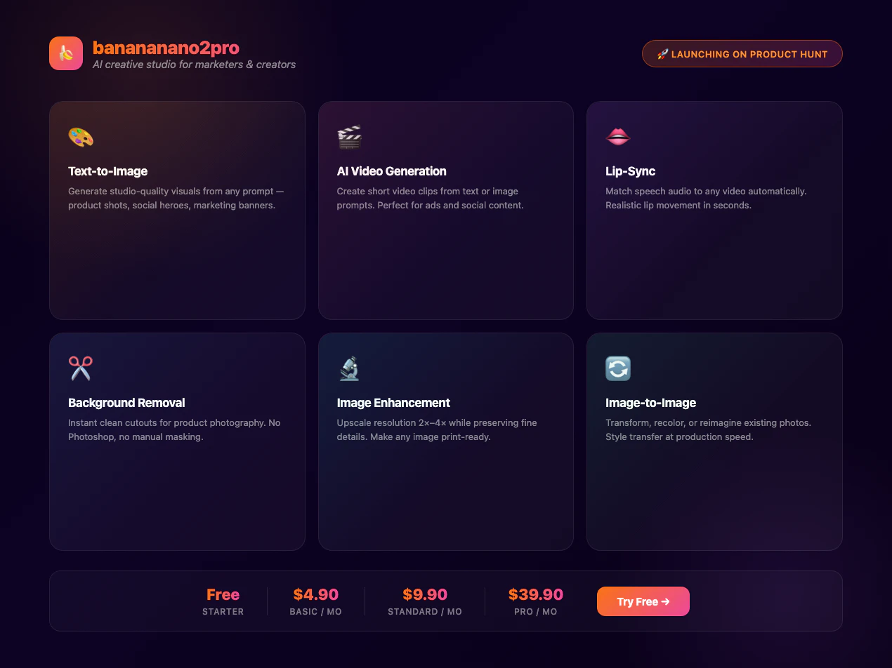 Marketing teams waste hours iterating on visuals. Banananano2Pro kills that loop. It's a single A...