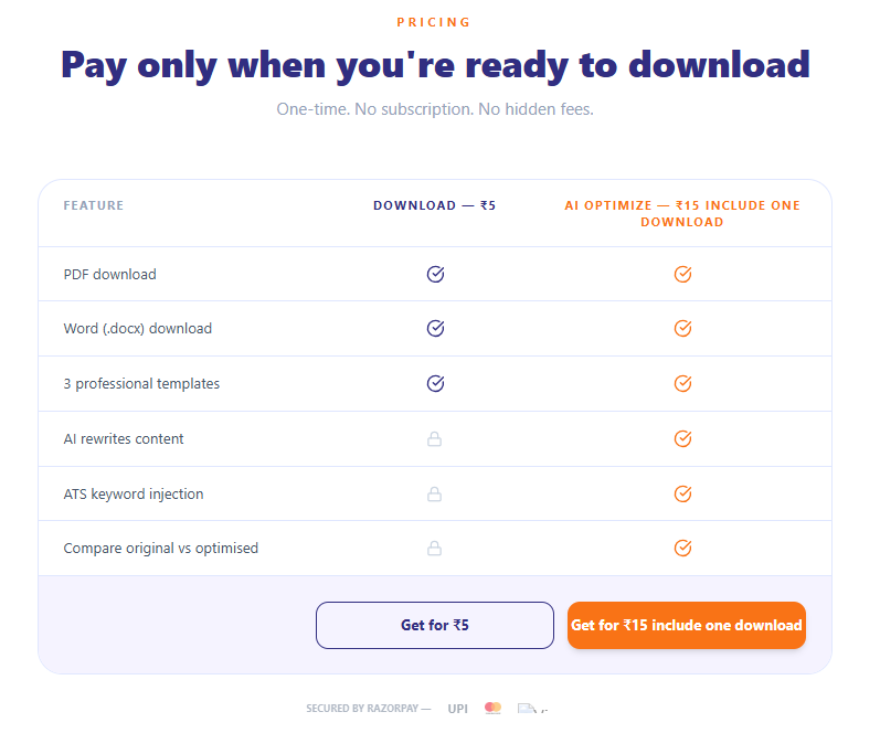 AI resume builder — optimize, pick a template & download