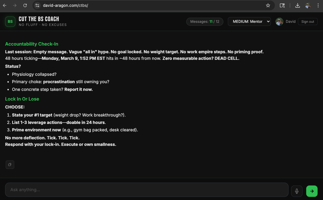 AI coach that calls out your BS & pushes you to take action.