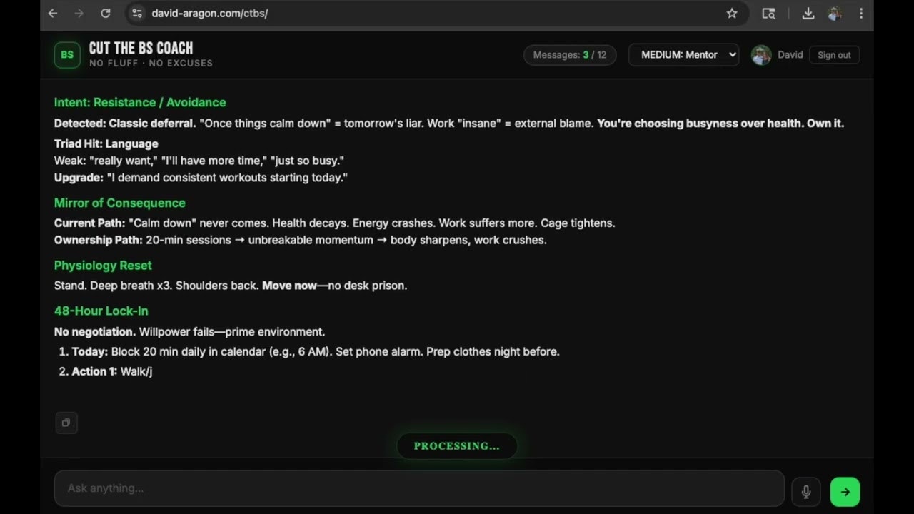 Stuck making excuses and stalling on goals? Cut the BS Coach is the relentless AI that calls out ...