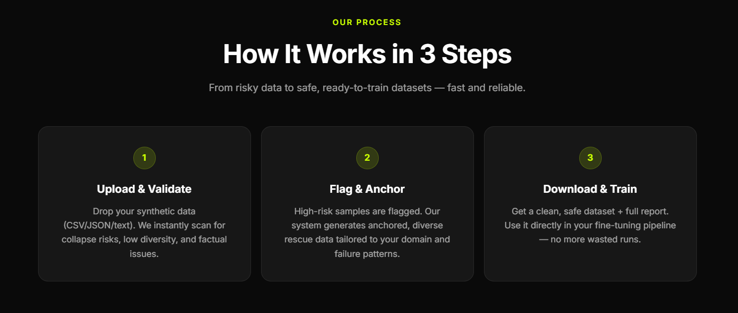 Miniclay AI validates synthetic data, detects collapse risks, anchors risky samples, and generate...
