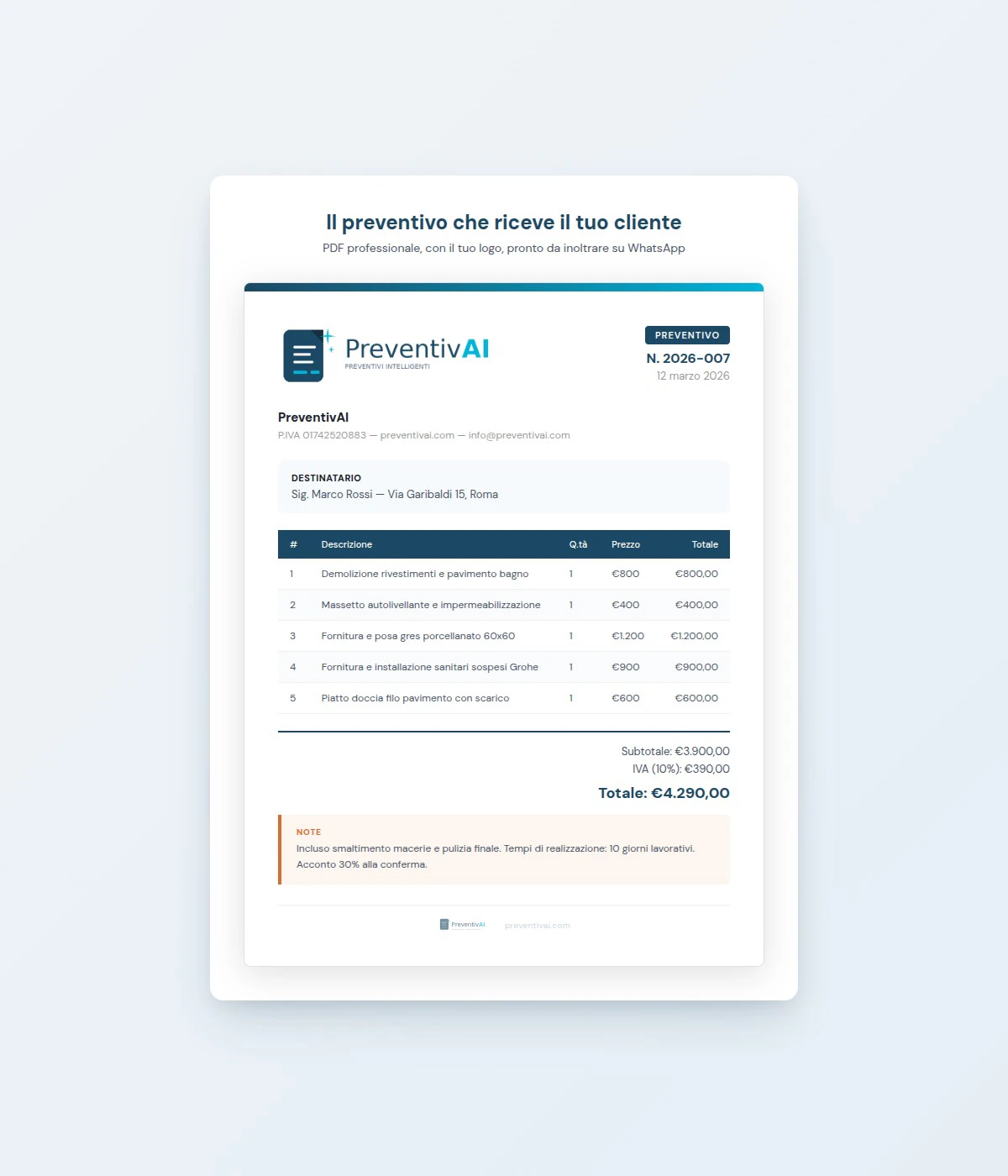 Tradespeople spend 30+ minutes every evening writing quotes on a computer. PreventivAI changes th...