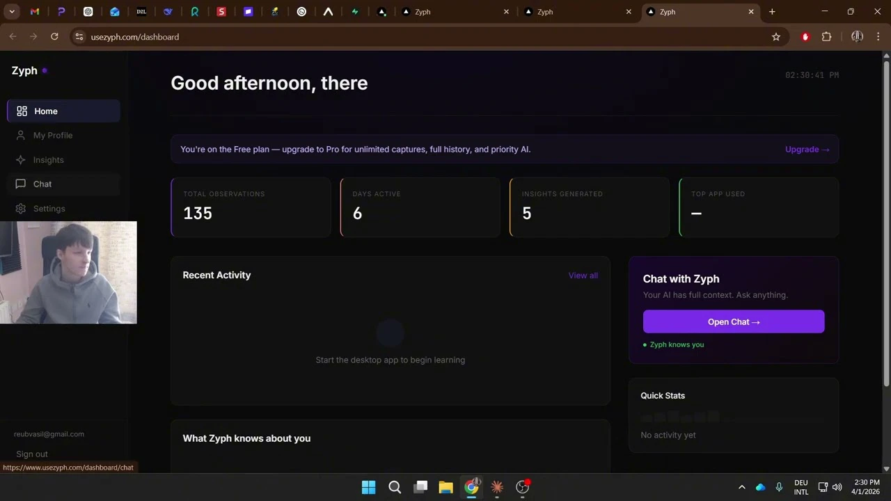 Zyph runs silently in the background, reads your screen every 30 seconds, and builds a personal A...