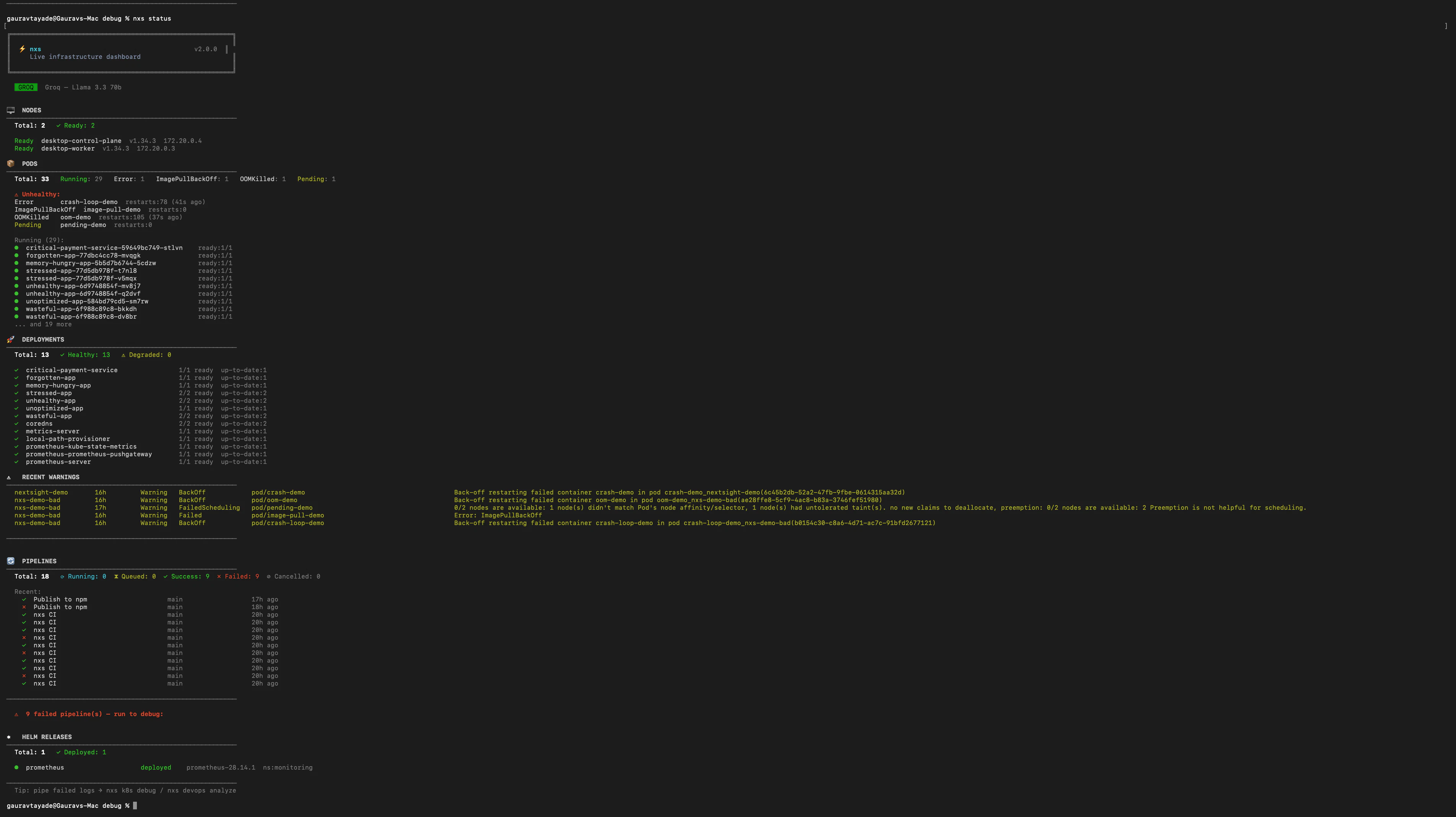 nxs is an open-source CLI that debugs Kubernetes, Docker, and CI/CD errors from your terminal. Pi...