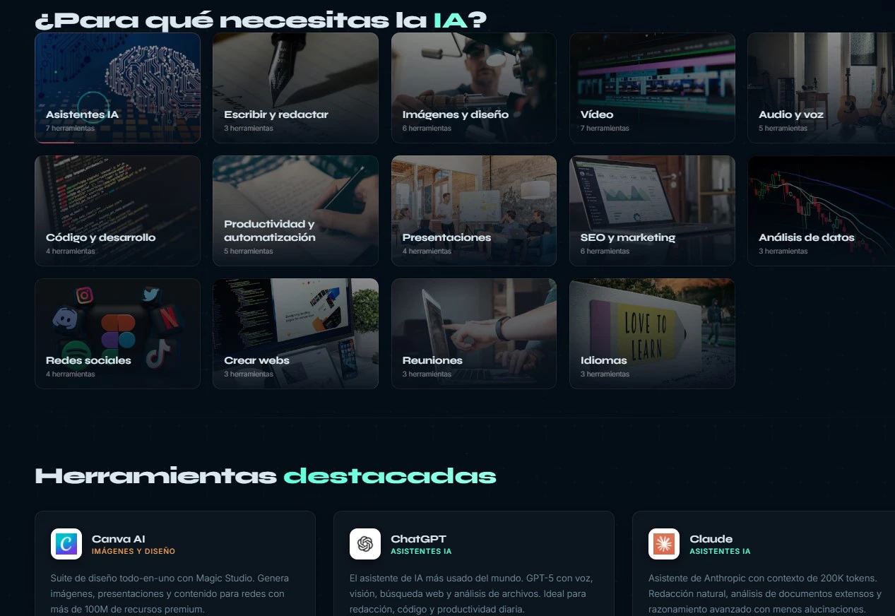 El directorio de herramientas IA en español con asistente