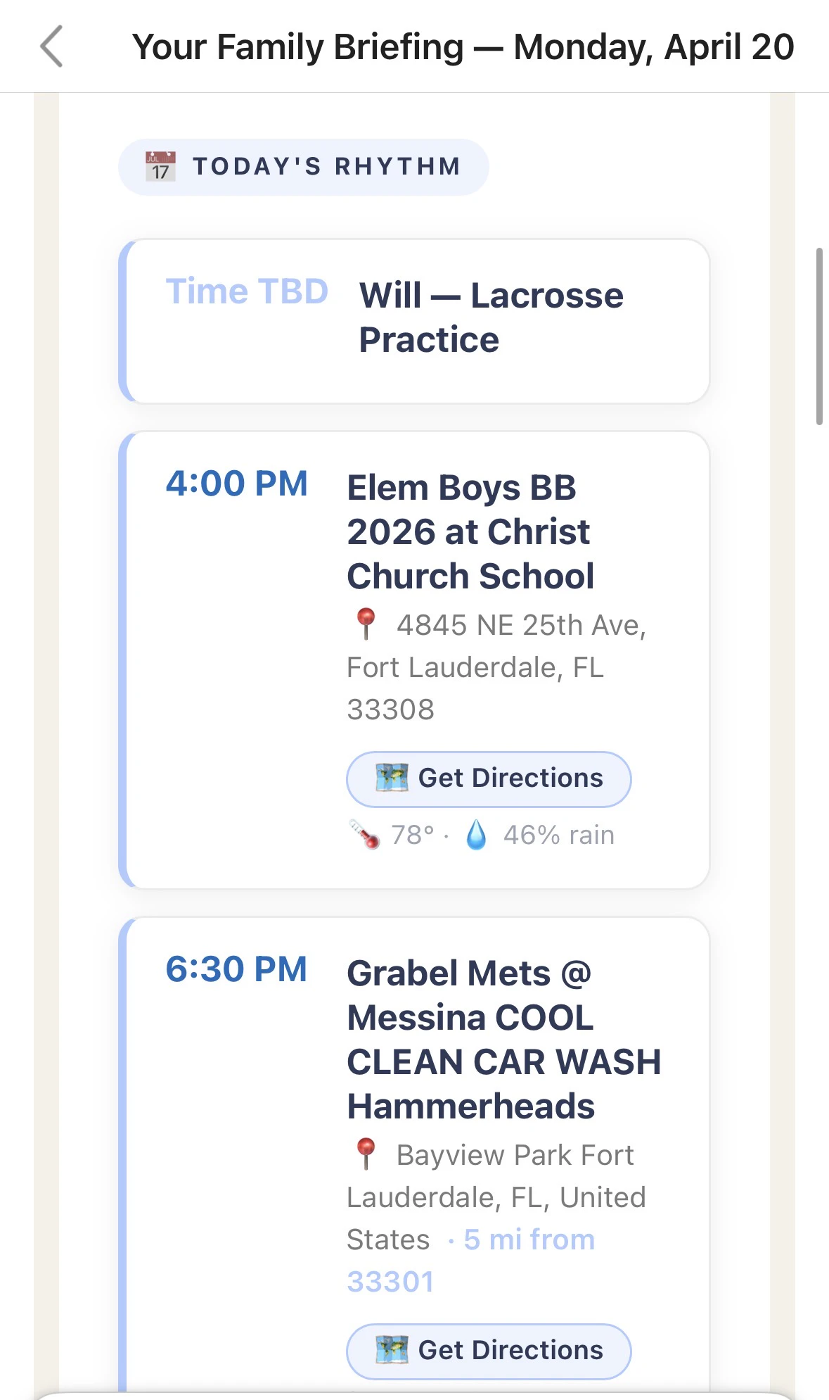 Every morning at 6:30 AM, your family gets one email with everything that matters today — schedul...