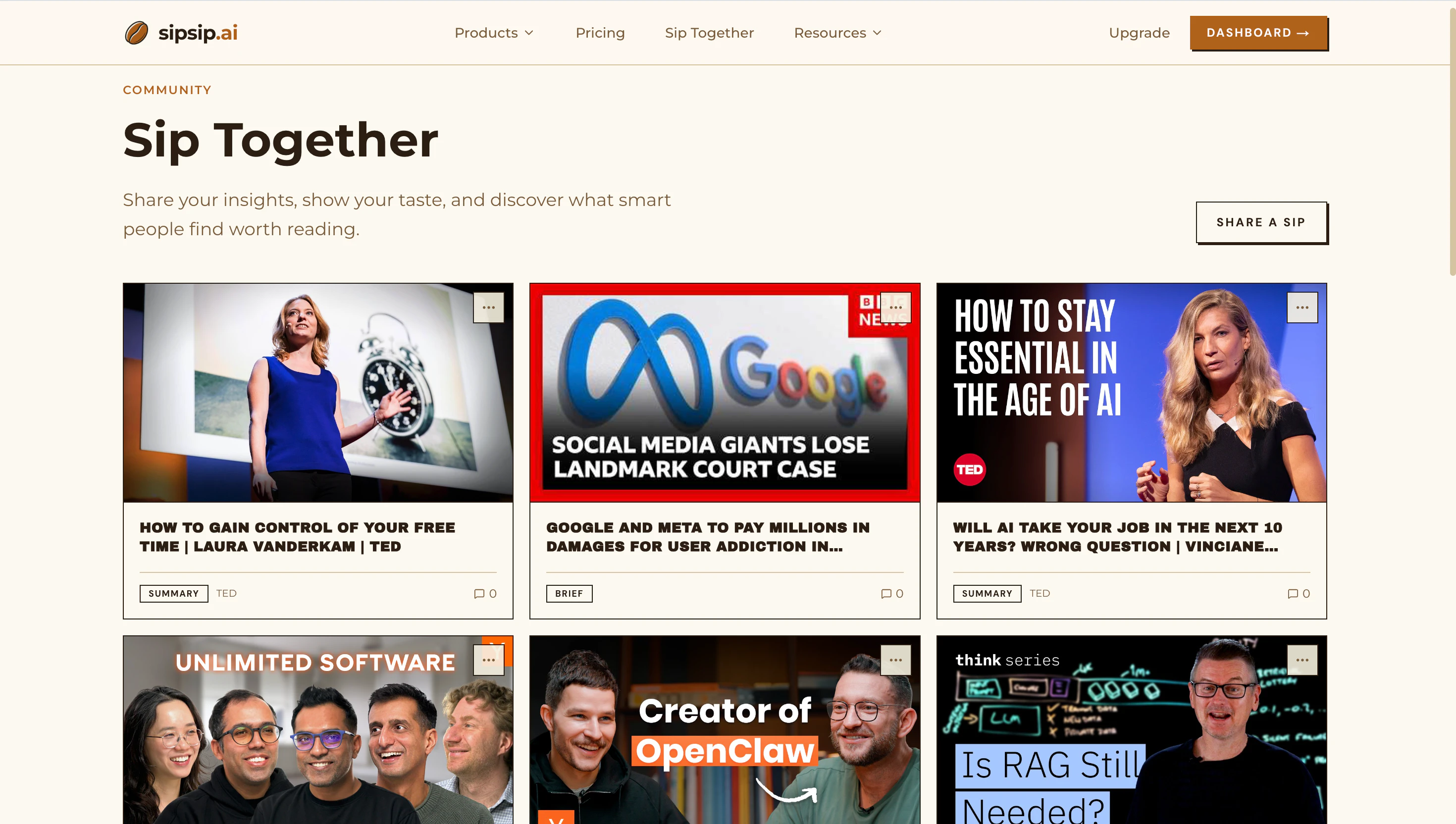 Sip the signal. Skip the noise.☕️ sipsip.ai transforms information overload into actionable wisdo...