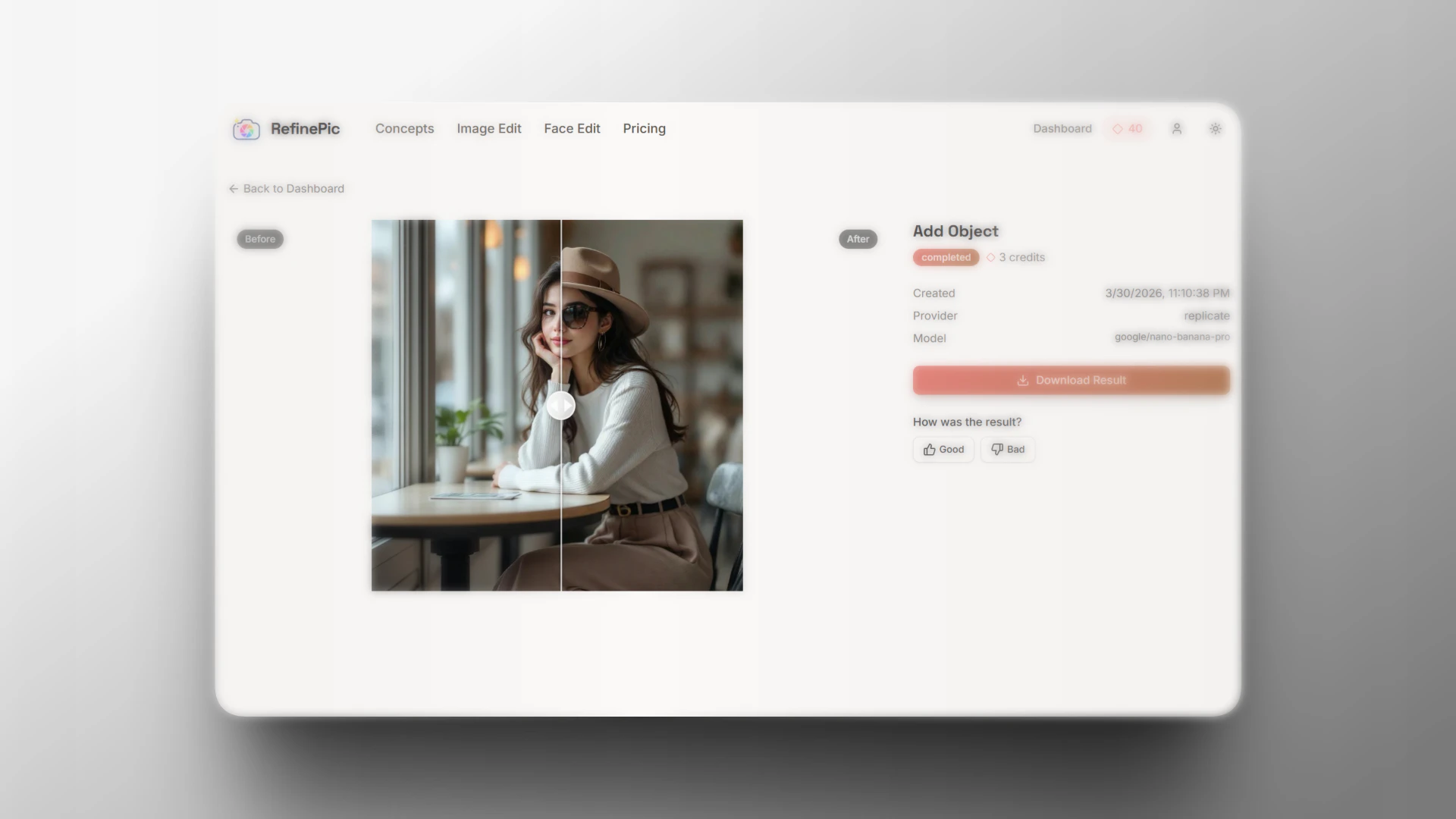 RefinePic is an AI photo enhancement platform for portraits, beauty retouching, and creative edit...