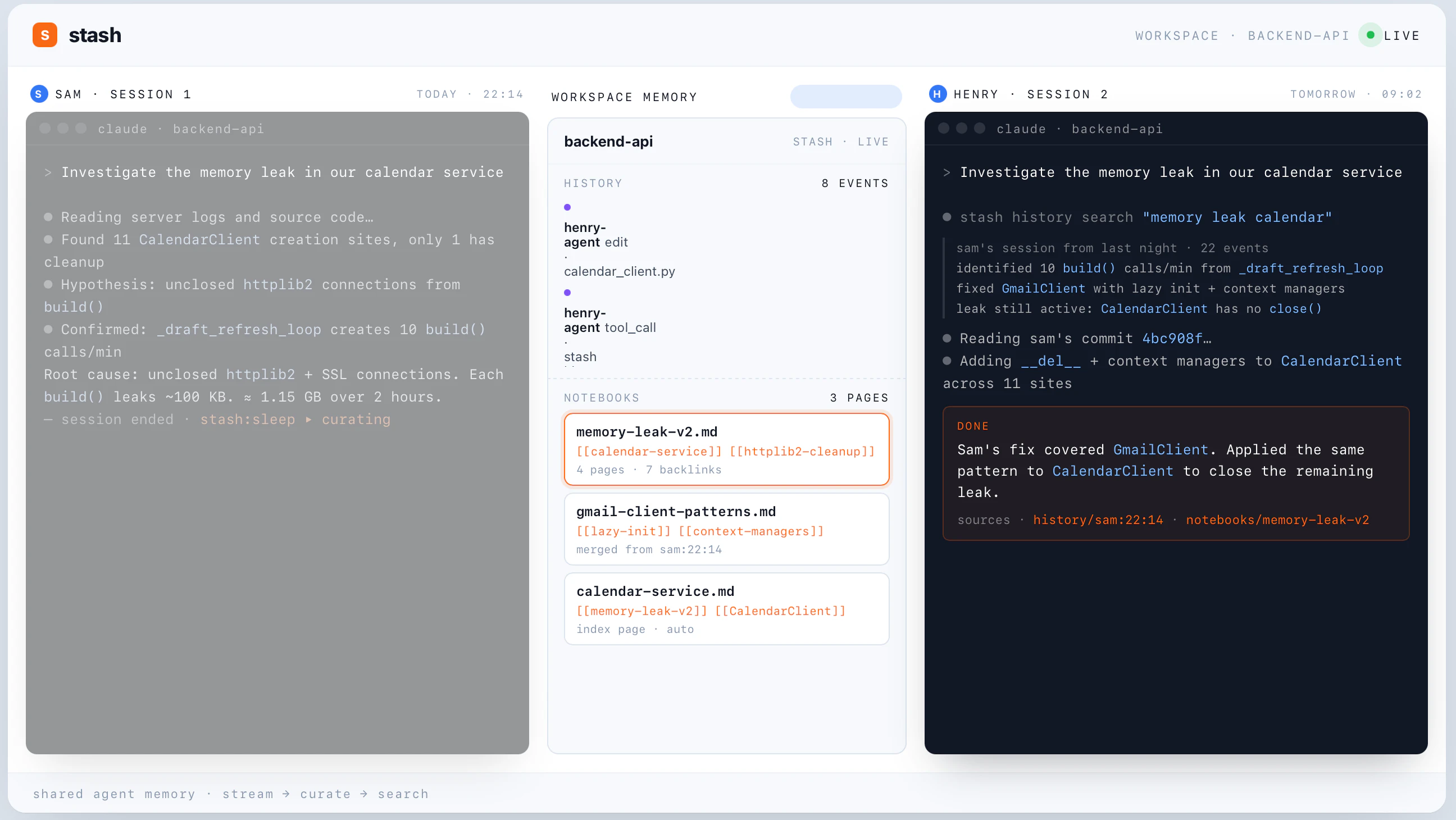 Stash is a shared memory your team's repos and coding agents. Every session, decision, and search...