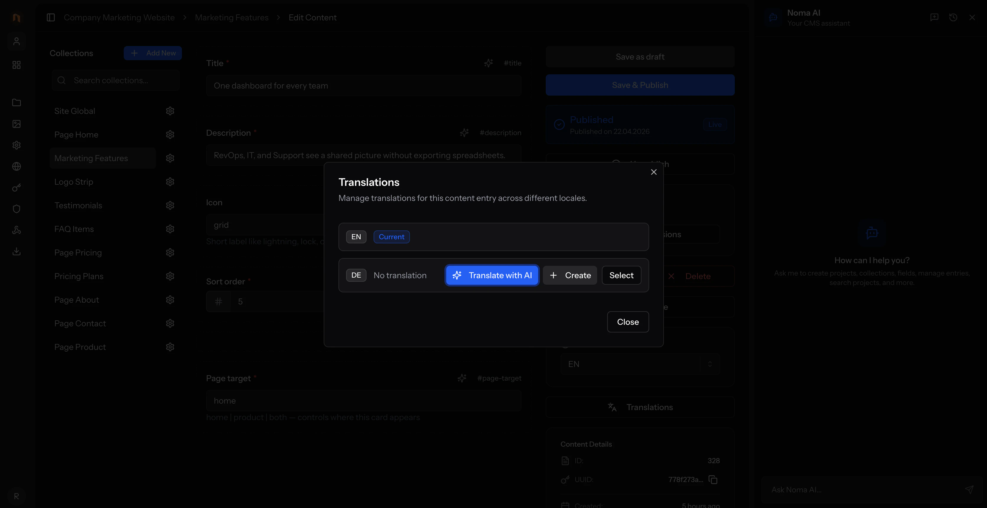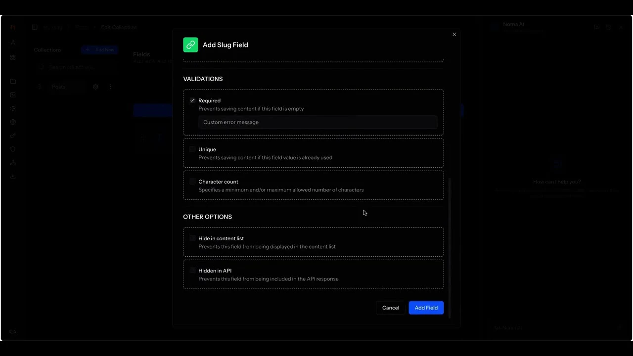 NomaCMS is a headless CMS built for the AI era. Model content with collections, fields, and local...
