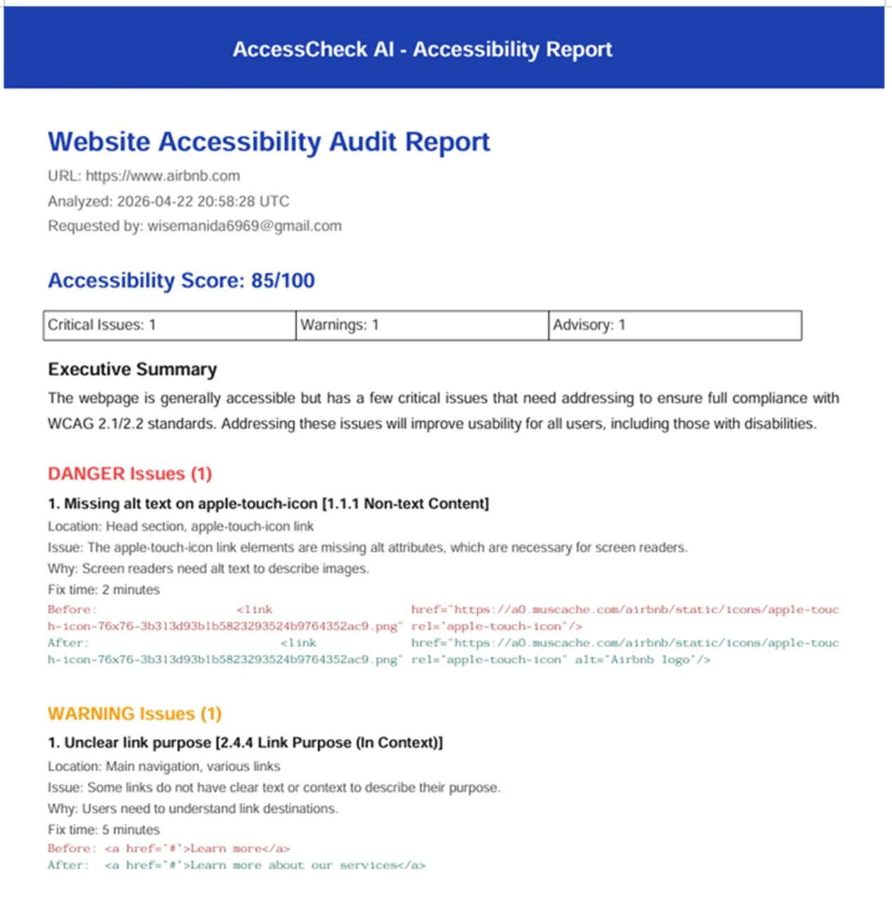 Most accessibility tools tell you what's broken — ours fixes it for you. AccessScan AI runs a WCA...