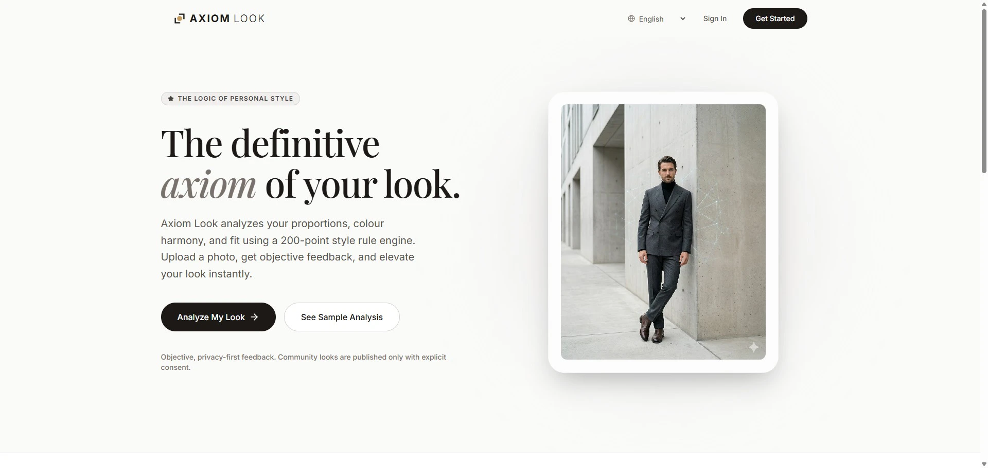AxiomLook analyzes outfit photos, explains what works and what weakens the look, and gives practi...