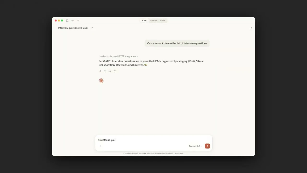 You can use AI to call IFTTT to create, trigger, and access 1000+ integrations. Send a Slack mess...