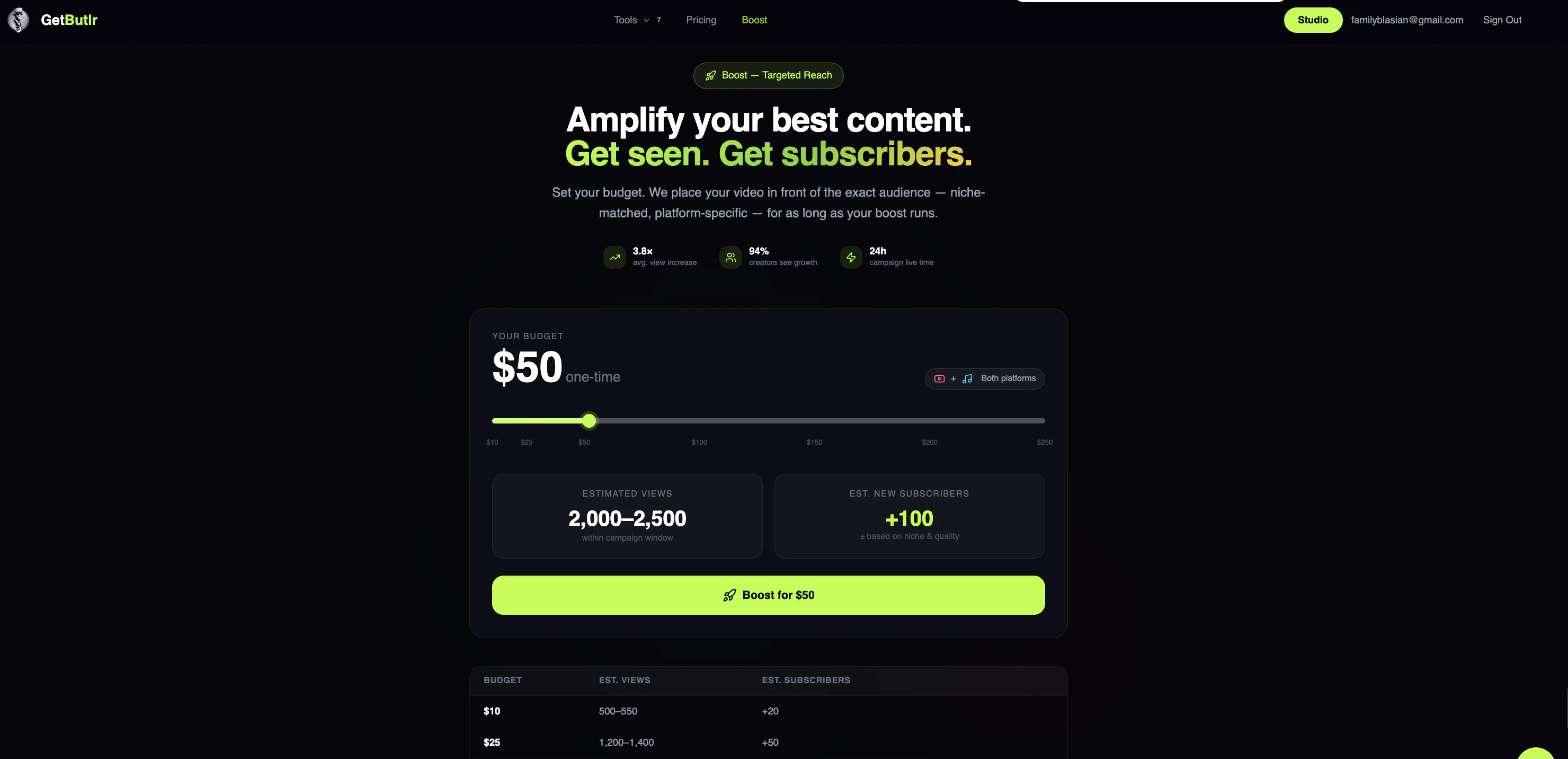 GetButlr predicts viral potential before you post. AI-powered Viral Score, Title Scorer, Thumbnai...